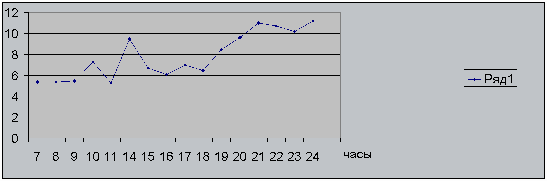 Иллюзия Мюллера – Лайера. Выявлена у всех испытуемых опытной и контрольной групп. Встречалась более чем в 95% случаев из 1100 проведённых в различных вариантах определений. Максимальные величины относительной ошибки до –50%. В остальных случаях относительная ошибка была не выше +10%. У “художников” случаев отсутствия иллюзии в разовых определениях (положительной ошибки) не выявлено. При систематических индивидуальных определениях для испытуемых контрольной группы происходит уменьшение величины иллюзии и её погрешности, но она остаётся не меньше -5±2% даже при длительных наблюдениях. Динамика величины ошибки в течение дня для всех вариантов определения имела сходный характер. Усреднённые показатели по всем вариантам при почасовых наблюдениях показаны на графике. Значения повторяются приблизительно с 12-и часовой периодичностью. Минимумы отмечаются в начале дня и вечером, максимумы – в полдень и полночь. Размах колебаний двухкратный.