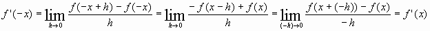 в одной точке своей области определения). Вычисление производных показывает, что все они четны. Так естественным образом рождается гипотеза: “Если функция нечетна и дифференцируема, то ее производная четна”. Проверка справедливости этой гипотезы приводит к формальному доказательству, приведенному выше.