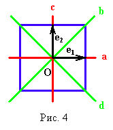 С квадратом ABCD жестко свяжем два вектора e1, e2 (рис. 4). При любом преобразовании квадрата пара векторов (e1, e2) займет новое положение, обозначим его символом: (± ei, ± ej) (i, j = 1,2; i № j). Имеется всего восемь символов: