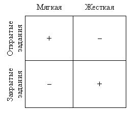 Данное положение можно проиллюстрировать на модели четырехклеточной прямоугольной матрицы. По горизонтали мы обозначим два полярных стиля решения задач, а по вертикали характер предлагаемых заданий. (см. Рис.1)