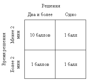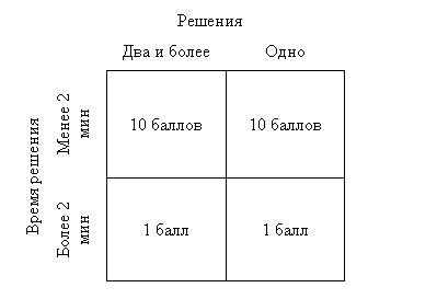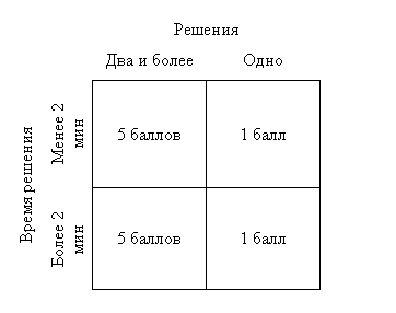 Когда мы поощряем творческий подход к заданию, не реагируя на время, испытуемый получает за два и большее количество решений по 5 баллов, а за одно только 1 балл.