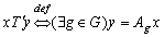 Каждое действие A порождает отношение эквивалентности T' на множестве M заданное следующим образом: