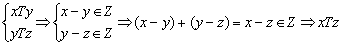 Доказательство того факта, что T - отношение эквивалентности, основано на свойствах операций над вещественными числами. Например, транзитивность доказывается следующим образом: